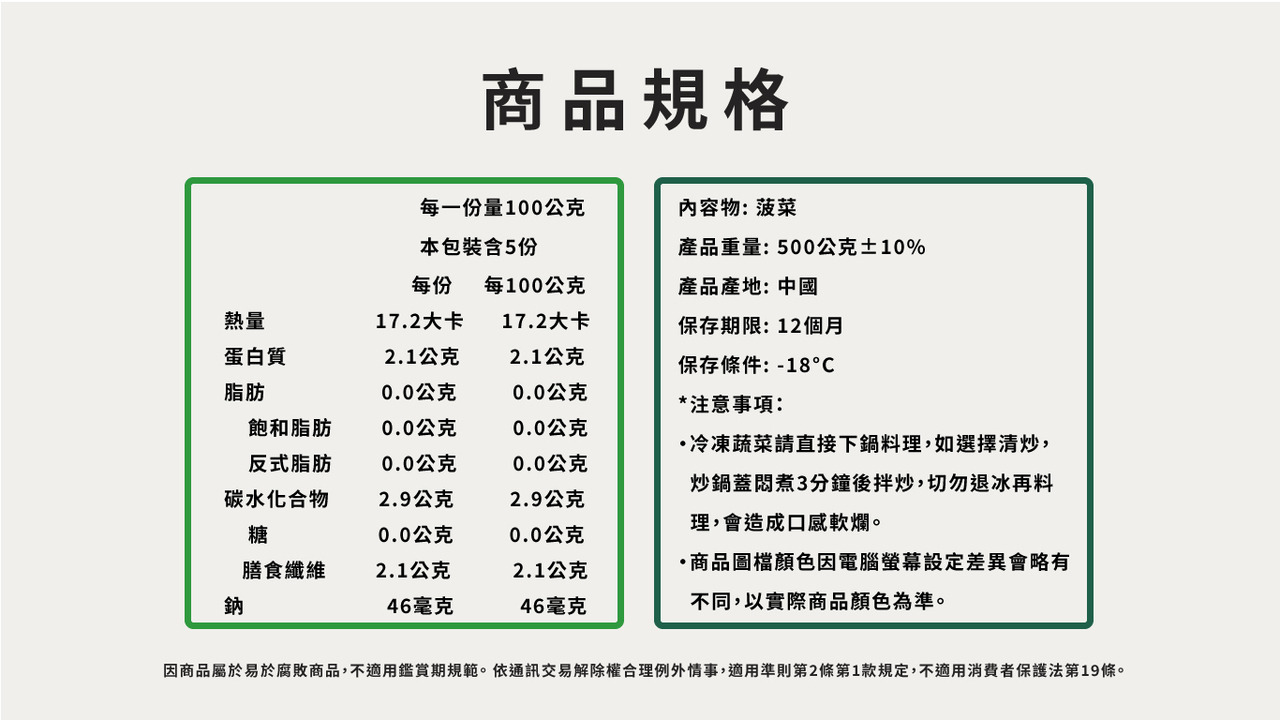 鮮凍菠菜_500G/包|食安先生